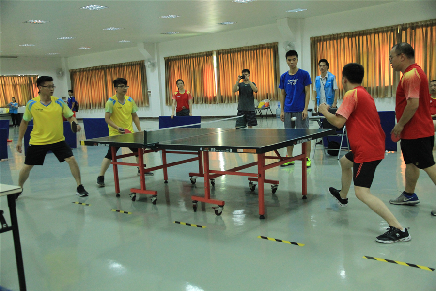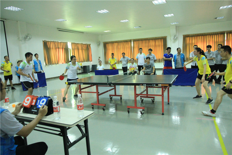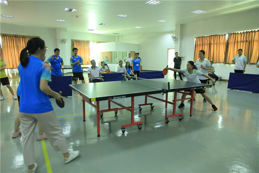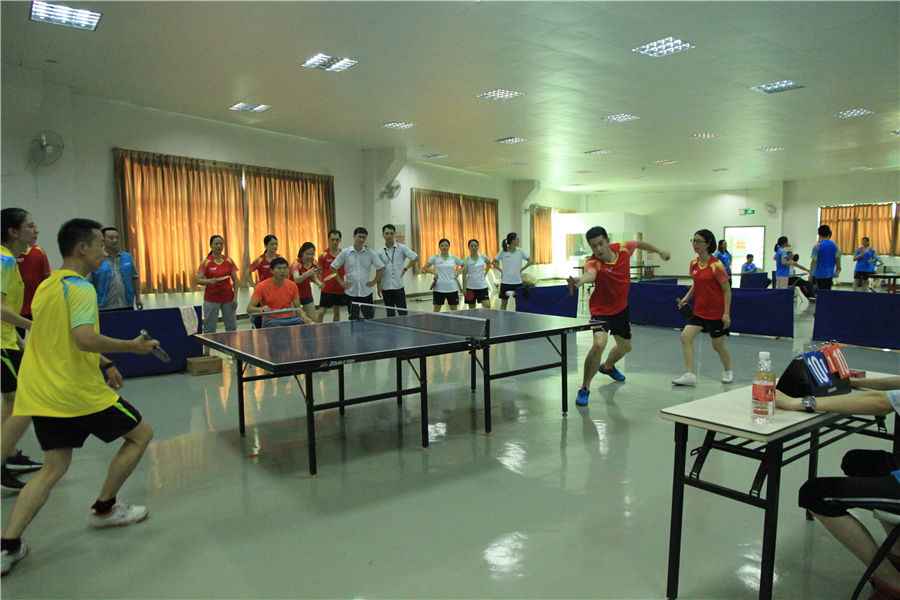 由于气象原因,8月15日的篮球赛以及8月16日拔河赛延期进行。而“腾博汇游戏官网杯”活动会乒乓球赛今日四雄角逐,现场空气异常强烈!